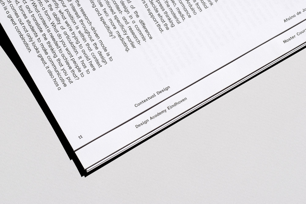 All Projects N° Title Date Type Medium 01 Literally Anything (28-30 Nov. 2025, Rotterdam) 2025 Self-Initiated Exhibition Literally Anything (28-30 Nov. 2025, Rotterdam) Self-Initiated, Exhibition, 2025 Literally Anything overlays my personal life with global events and ponders how to make sense of both intimate and broadcasted experiences. The prints, collages and aluminium objects I present scramble public coverage with private meaning through type, texture and colour — contrasting global news headlines with private quotes of for instance friends, family, and professionals. Go to project 02 Item Amsterdam 2024 Furniture Label Brand Identity, Strategy, Art Direction, Website Item Amsterdam Furniture Label, Brand Identity, Strategy, Art Direction, Website, 2024 Strategy, creative direction and brand identity for ITEM Amsterdam, a Dutch furniture label producing high-end, uncompromising design furniture. The identity emphasizes iconic and monumental pieces through a bold, sculptural logomark and a precise typographic system, reflecting the founders’ extensive expertise and passion for heritage and outstanding design. Go to project 03 Design Academy Graduation Catalogue 2020 2020 Art School Book, Art Direction Design Academy Graduation Catalogue 2020 Art School, Book, Art Direction, 2020 Concept, design and art-direction for the 2020 Design Academy Eindhoven Graduation Show catalogue, structured by an algorithm that generates imaginary news items from the project texts. Examples such as “2020 Dictator Fights Exclusion” and “Drone Signals Disrupt the Self” highlight overarching themes and depict a speculative future imagined by the graduates. Go to project 04 Issey Miyake — Fold & Crease 2024 Fashion Brand Exhibition, Visual Identity Issey Miyake — Fold & Crease Fashion Brand, Exhibition, Visual Identity, 2024 Concept and design for the visual identity of “Fold and Crease,” an exhibition at the Issey Miyake showroom in Milan. The design draws inspiration from We Make Carpets’ installation of dyed skewers, with a textured letter treatment set in bright yellow and pink to reflect the exhibition’s sculptural and playful qualities. Go to project 05 In Light of Recent Events 2022 Self-Initiated Book, Research In Light of Recent Events Self-Initiated, Book, Research, 2022 Research and design of In Light of Recent Events, a self-initiated and self-published publication. The book explores the role of graphic design in news reporting and visual culture, magnifying the archetypical ways news images and headlines communicate urgency and immediacy, and amplify the state of alertness in contemporary society. Go to project 06 Waiting for Ideas 2023 Creative Studio Brand Identity, Typeface Waiting for Ideas Creative Studio, Brand Identity, Typeface, 2023 Type design and brand identity for Waiting for Ideas, a Paris-based creative studio operating at the interface of art and design. The branding revolves around a custom display typeface combining sharp angles with rounded corners. Letter alternatives for sentence initials and names create playful, ever-changing combinations, reflecting the studio’s experimental approach to creative processes. Go to project 07 Arno Hoogland 2019-23 2024 Artist Book, Art Direction Arno Hoogland 2019-23 Artist, Book, Art Direction, 2024 Design and art-direction for a monograph documenting the work of Arno Hoogland, a product designer and artist based in Amsterdam. The publication presents a curated overview of his designs from 2019 to 2023, including three-dimensional wall panels, delicate light sculptures, and high-end furniture, emphasizing clarity and precision in both design and presentation. Go to project 08 Selling Nothing 2020 Gallery Prints Selling Nothing Gallery, Prints, 2020 Concept and design for “Selling Nothing,” a contribution to the Post – The Poster exhibition at Onomatopee. The poster explores the dual role of posters as information carriers and design objects, contrasting commercial visual language with ornate patterns to create a playful tension between advertisement and artifact. Go to project 09 Feu! 2023 Exhibition Visual Identity Feu! Exhibition, Visual Identity, 2023 Graphic design and art direction for FEU!, a group exhibition organised by the design collective Meet Met Met during Paris Design Week 2023. The exhibition featured twenty emerging designers from France and abroad, each presenting their own interpretation of one of the most ambiguous design objects: the ashtray. Go to project 10 Club90 2020 Dance Club Visual Identity, Poster Club90 Dance Club, Visual Identity, Poster, 2020 Visual identity and art direction for Club90, a Utrecht-based pop-up music venue hosting monthly house and dance events at Filmcafé Utrecht. The identity combines clear typography and minimalist layouts with bold, evolving shapes and colours that change for each event, reflecting the dynamic and playful spirit of the venue. Go to project 11 École Internationale de Mode & Luxe 2022 Art School Brand Identity, Logo System École Internationale de Mode & Luxe Art School, Brand Identity, Logo System, 2022 Brand identity and logo redesign for École Internationale de Mode et Luxe. The flexible identity builds on the school’s original crest and signature purple, featuring a logo system with a diamond on the ‘i’ to symbolize excellence. Supported by a versatile colour palette and dynamic graphic elements, the identity reflects both the fashion industry and the vibrant university environment. Go to project 12 Design Academy Graduation Show 2021 2021 Art School Exhibition, Visual Identity, Campaign Design Academy Graduation Show 2021 Art School, Exhibition, Visual Identity, Campaign, 2021 Visual identity and campaign design for the 2021 Design Academy Eindhoven Graduation Show during Dutch Design Week. An elaborate index compiled from project descriptions is used throughout the communication, offering glimpses of the conceptual framework. I