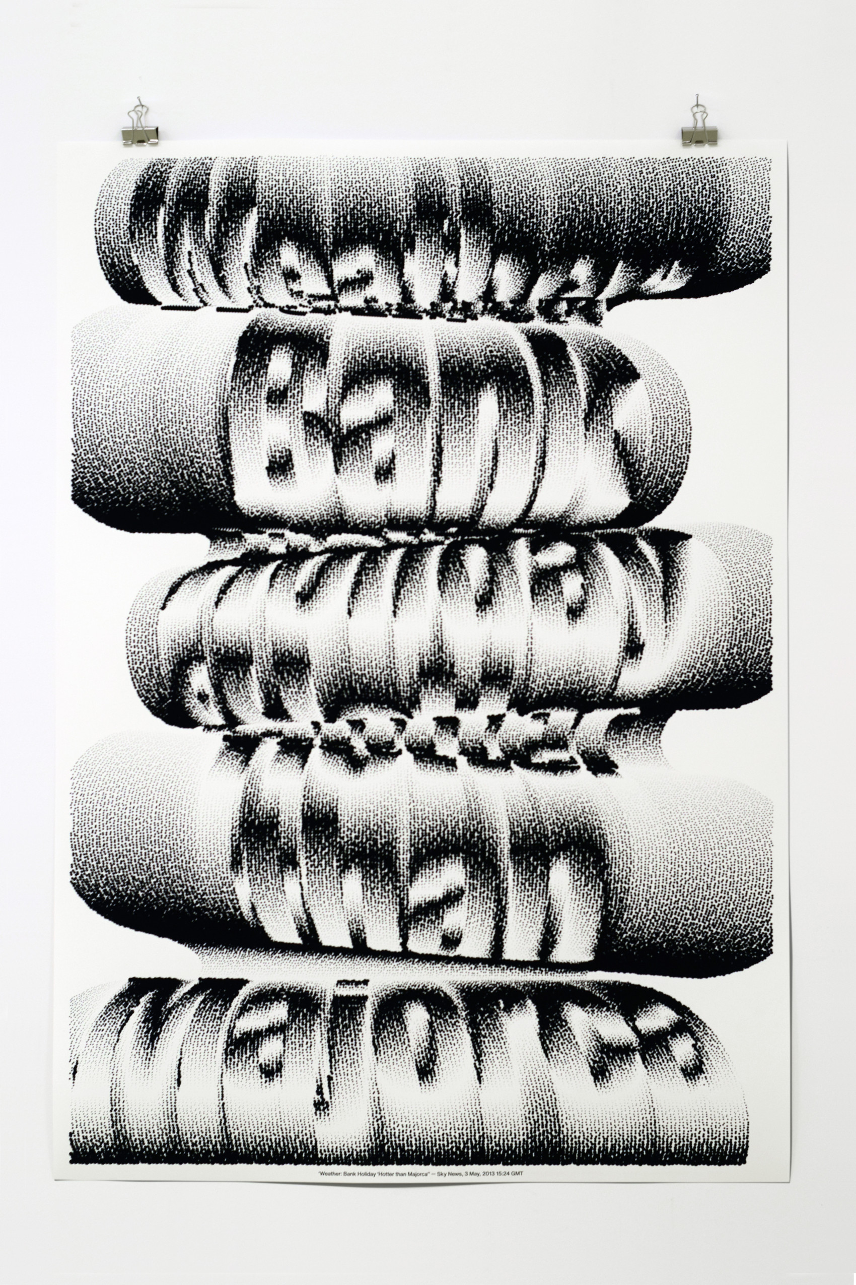 Literally Anything overlays my personal life with global events and ponders how to make sense of both intimate and broadcasted experiences. The prints, collages and aluminium objects I present scramble public coverage with private meaning through type, texture and colour — contrasting global news headlines with private quotes of for instance friends, family, and my therapist. Therefore Literally Anything is about language: how we use statements, quotes, motto’s, puns and other expressions to package our experience of things that happen around us. At the same time Literally Anything is about format: how we understand the visual codes and templates through which we engage with language. I take language out of the conventional formats that separate the private from the public. Whether it is a bold news headline taken from the Washington Post frontpage, or a private whatsapp message sent by my mom, Literally Anything is a space in which their usual hierarchy is broken — however messy, overblown, or peculiar that may be.