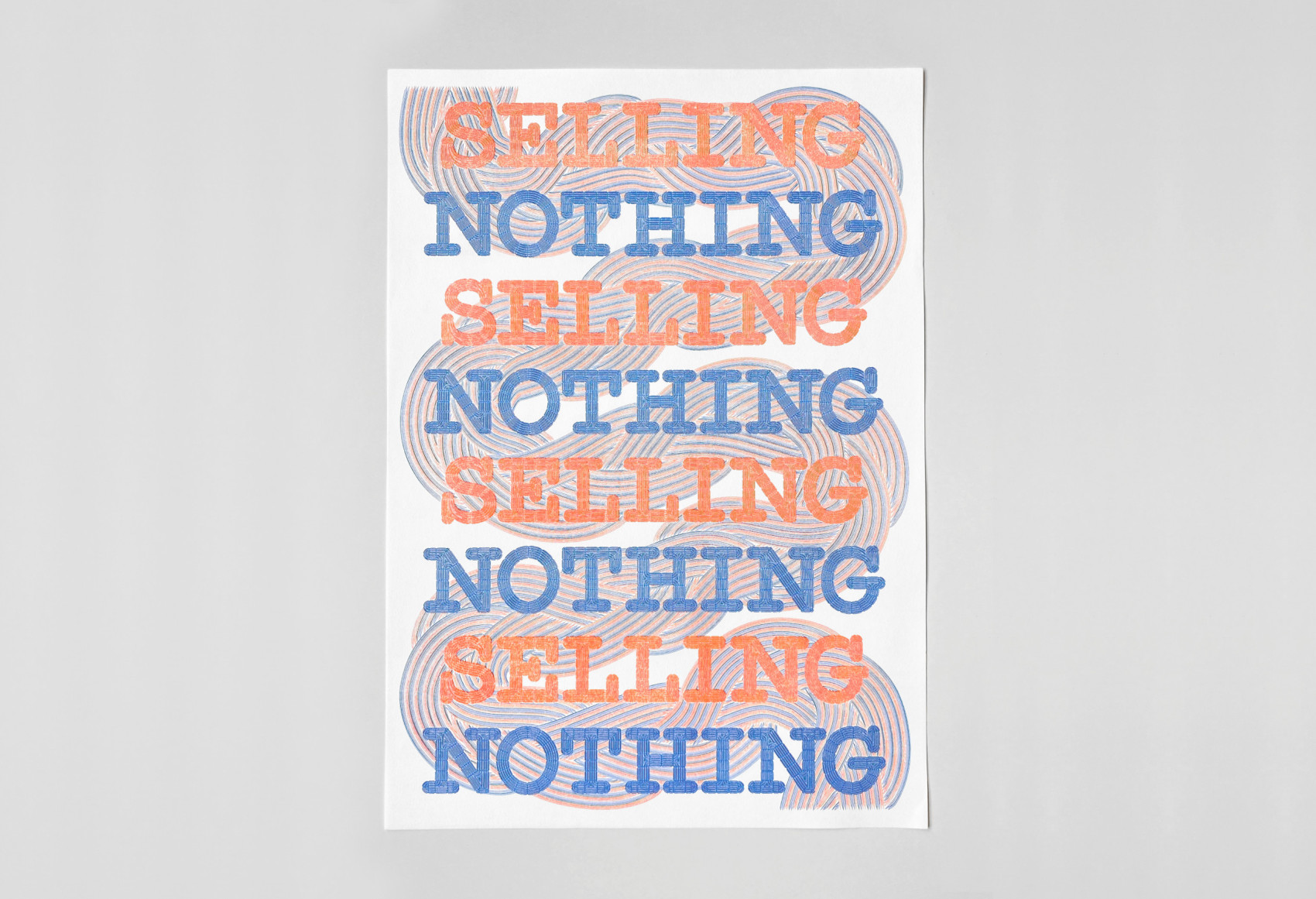 Concept and design for “Selling Nothing,” a contribution to the Post – The Poster exhibition at Onomatopee. The poster explores the dual role of posters as information carriers and design objects, contrasting commercial visual language with ornate patterns to create a playful tension between advertisement and artifact.