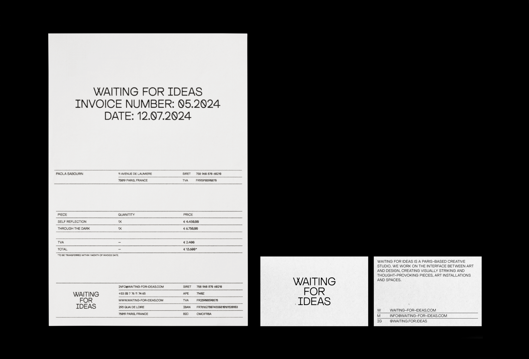 Type design and brand identity for Waiting for Ideas, a Paris-based creative studio operating at the interface of art and design. The branding revolves around a custom display typeface combining sharp angles with rounded corners. Letter alternatives for sentence initials and names create playful, ever-changing combinations, reflecting the studio’s experimental approach to creative processes.
